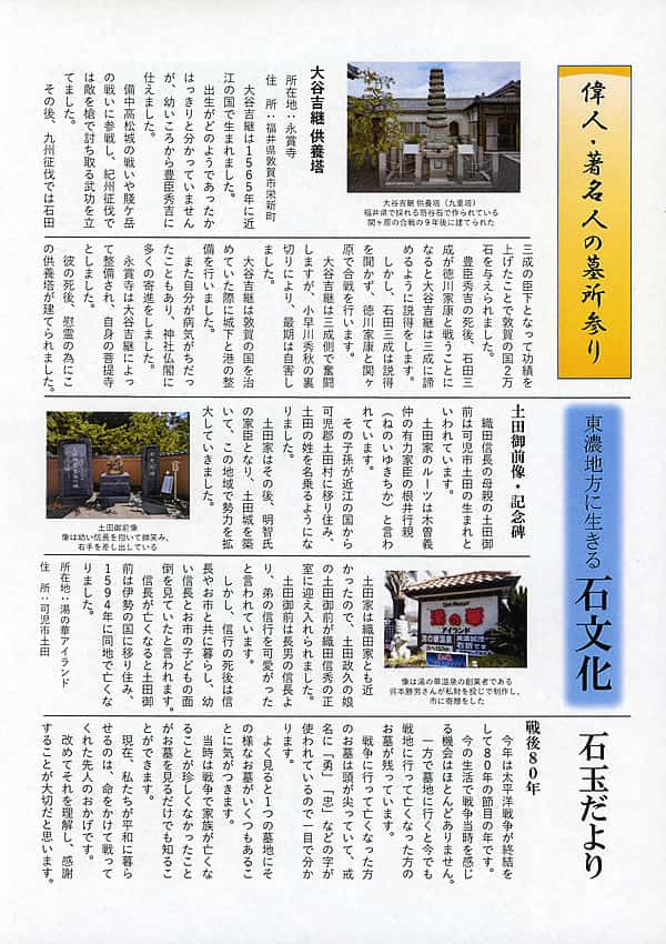 また、お墓の仕事を通して先祖供養の大切さを身をもって感じていることも大きく、この供養の大切さを一人でも多くの方に伝えていく取り組みも重要だと考えています。「石玉通信」でも、そのことを意識したメッセージを発信するようにしていますが、供養の気持ちを大切にして過ごしていくことは、自分の人生を豊かにするものだと思っています。これからも弊社とご縁を持っていただける方々の人生を少しでも豊かにするお手伝いをしていきたい。そのような姿勢で、お墓づくりの仕事に邁進していきたいと考えています。